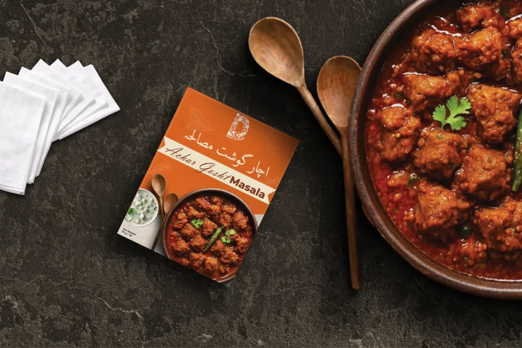 Add Remaining Masala and Yogurt: Add the remaining Desi Lazzat Achar Gosht Masala to the pot. Pour in the plain yogurt. Mix thoroughly to combine all ingredients.